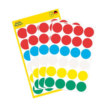 Etikett, 18 mm, kör, AVERY ZWECKFORM, 5 különböző szín, 96 etikett/csomag