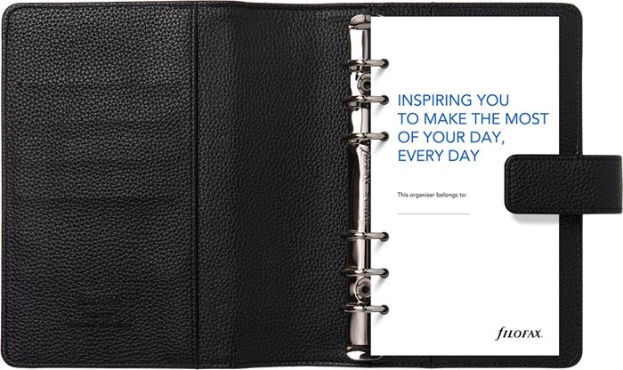 Kalendárium, gyűrűs, betétlapokkal, personal méret, FILOFAX "Camden", fekete