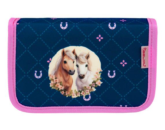 Tolltartó, klapnis, cipzáras, BELMIL "Meet your Horses", kék-rózsaszín, lovak