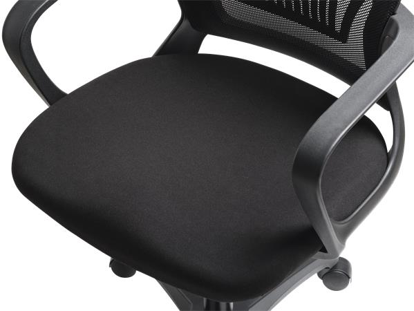 Irodai szék, karfás, fekete szövetborítás, feszített hálós háttámla, fekete lábkereszt, MAYAH "Vega", fekete