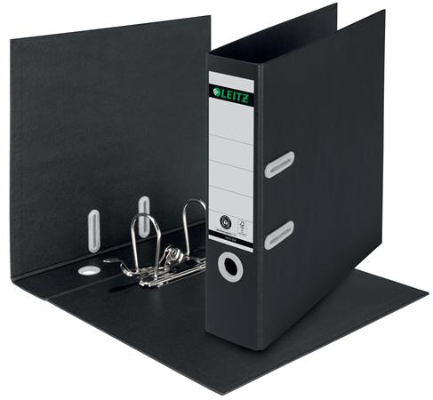Iratrendező, 80 mm, A4, karton, újrahasznosított, LEITZ "180 Recycle", fekete