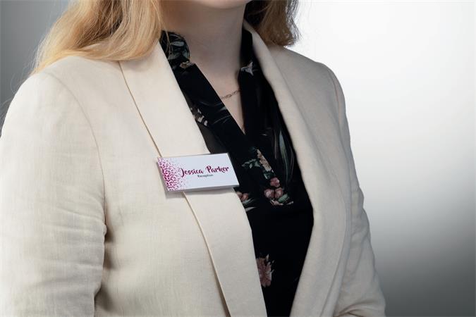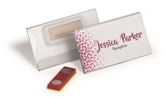 -speciális mágneses rögzítéssel (megakadályozza, hogy a névtábla elforduljon, elcsússzon vagy meglazuljon viselés közben)