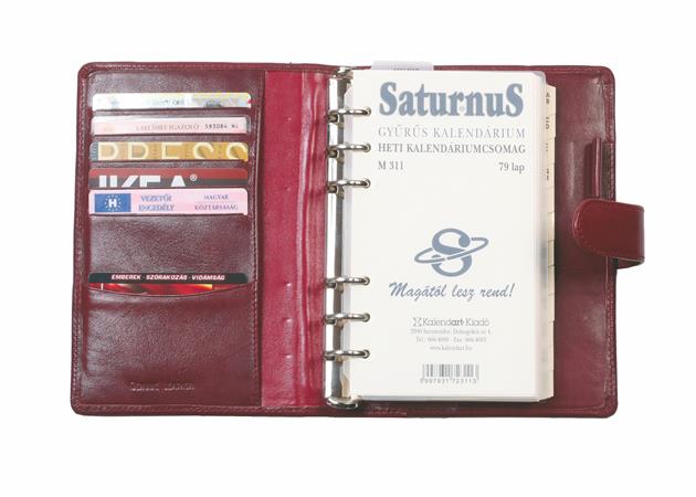 Kalendárium, gyűrűs, betétlapokkal, "L", marhabőr, SATURNUS, "212", barna
