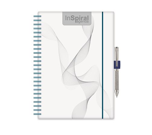 Naptár, tervező, A5, heti, DAYLINER, "InSpiral", fehér-kék