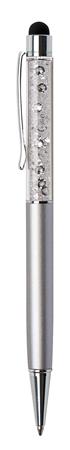 Golyóstoll, ezüst, felül fehér SWAROVSKI® kristállyal töltve, érintővel, 14 cm, ART CRYSTELLA®