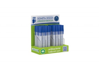 Golyóstoll display, 0,7 mm, kupakos, antibakteriális, ICO "Signetta", kék