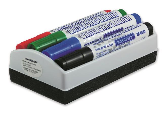 Táblamarker készlet, 2-3 mm, kúpos, tolltartóval, GRANIT "M460", 4 különböző szín + táblatörlő
