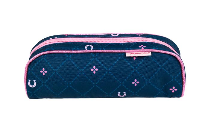 Tolltartó, henger alakú, cipzáras, BELMIL "Meet your Horses", kék, lovak