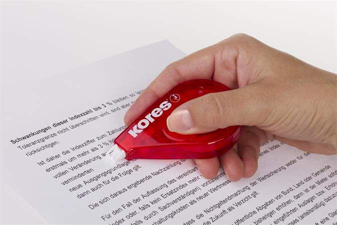 KezdőlapIrodaszerekJavítás, ragasztásHibajavítók és radírokHibajavító roller, 4,2 mm x 15 m, KORES "Roll On", piros