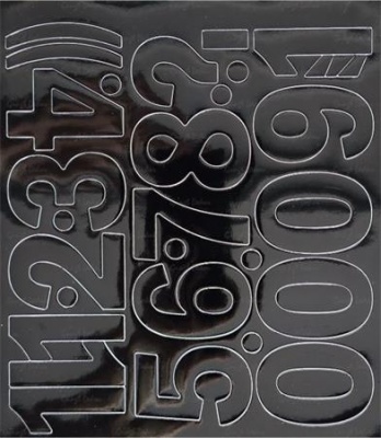 Öntapadós vinil tapétából hőpréssel stancolt számlap.